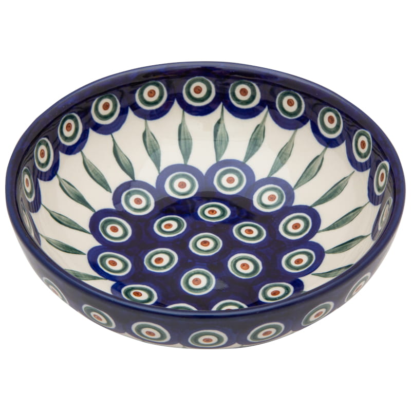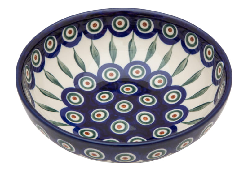 Boleslawiec pottery - handpainted. Classic pattern in a vintage style in blue, green and brown. The edge in navy blue.