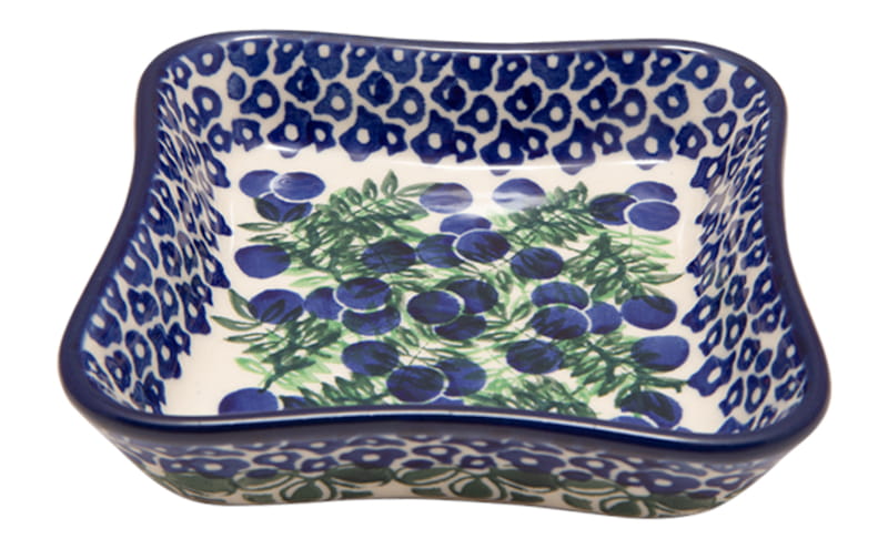 Pattern with a floral motif with dominant navy blue. Dark blue BERRIES. Border in navy blue. Boleslawiec pottery - handpainted.