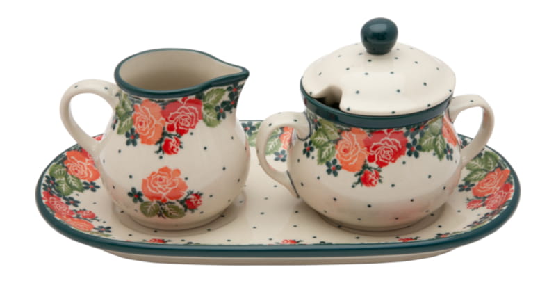 Sugar bowl 200 ml and milk jug 200 ml SET with a tray.