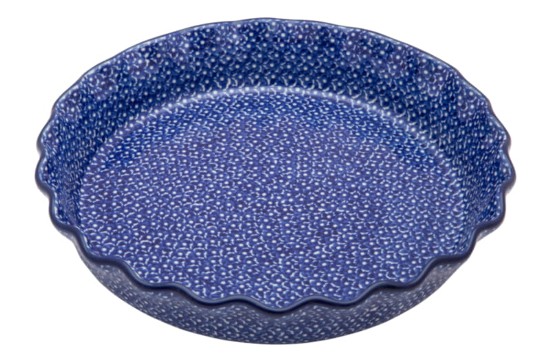 Boleslawiec pottery - handpainted. Floral pattern in navy blue. Border in navy blue.