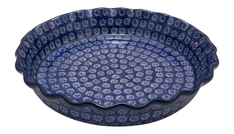 Boleslawiec pottery - handpainted. Ornamental pattern in navy blue. Border in navy blue.