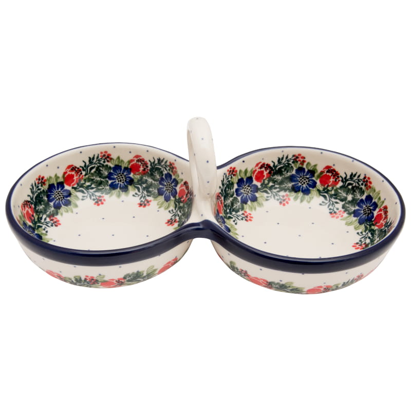 Floral pattern in red and navy blue. Boleslawiec pottery - handpainted.