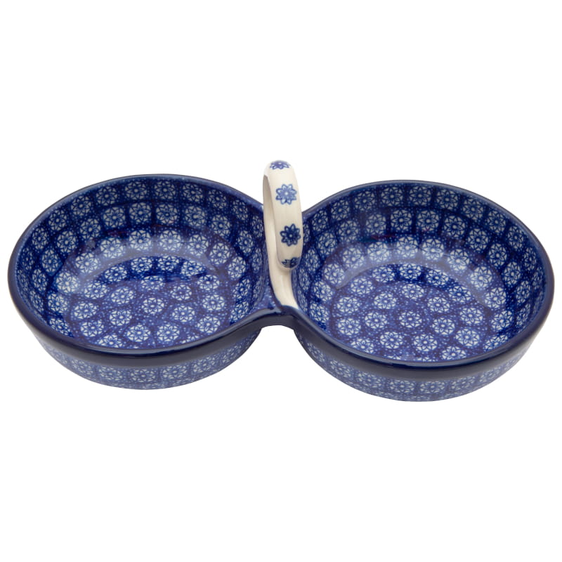 Ornamental pattern in navy blue. Border in navy blue. Boleslawiec pottery - handpainted.