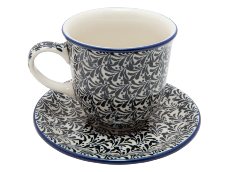 Wzór ORIENTALNY w kolorze czarnym. Wykończenie obrzeża w kolorze granatowym. Ceramika Bolesławiec - Handmade.