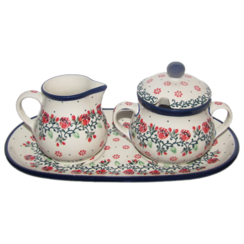 KOMPLET deserowy - Cukiernica 200 ml Dzbanek do mleka 200 ml - z podstawkiem.