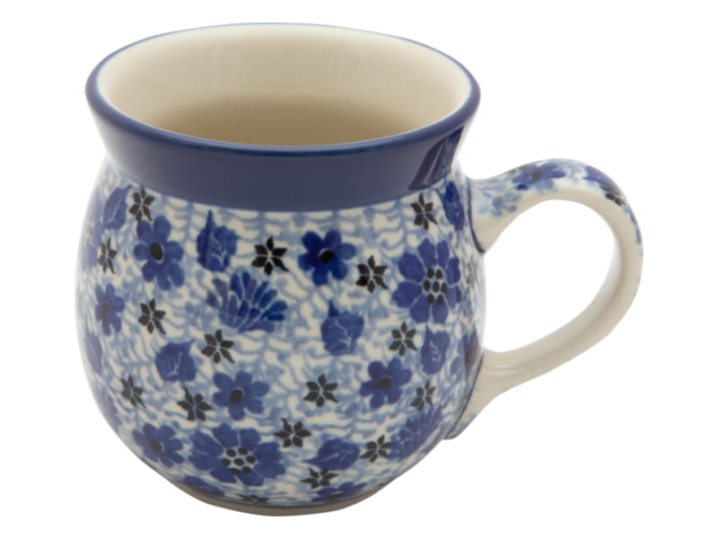 Ceramika Bolesławiec - HANDMADE. Wzór kwiatowy w kolorze granatowym. Wykończenie obrzeża w kolorze granatowym.