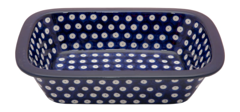 Maselniczka na dużą kostkę masła 200 lub 250 gram. Ceramika Bolesławiec - HANDMADE. Wzór KLASYCZNY z tłem w kolorze granatowym. Wykończenie obrzeża w kolorze granatowym.